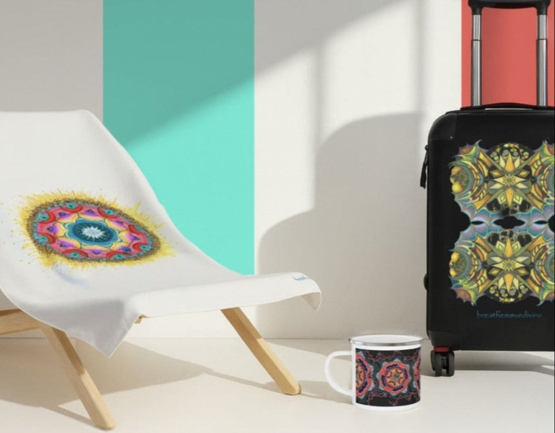 Every piece is based on my original artwork — sometimes bright and mandala-like, sometimes spooky or moody, but always made with heart. I’m autistic, and my sensory experience deeply shapes how I see and create.