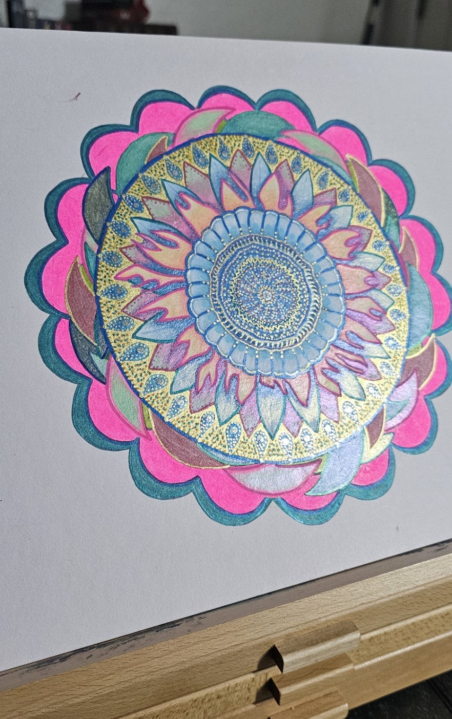 This gallery features my original mandala art, spiritual designs, and works in progress. Current media for my artwork are acrylic markers and colored pencils. Every piece is created with intention, focus, and the honest expression of a neurodivergent artist processing the world through color and pattern.
