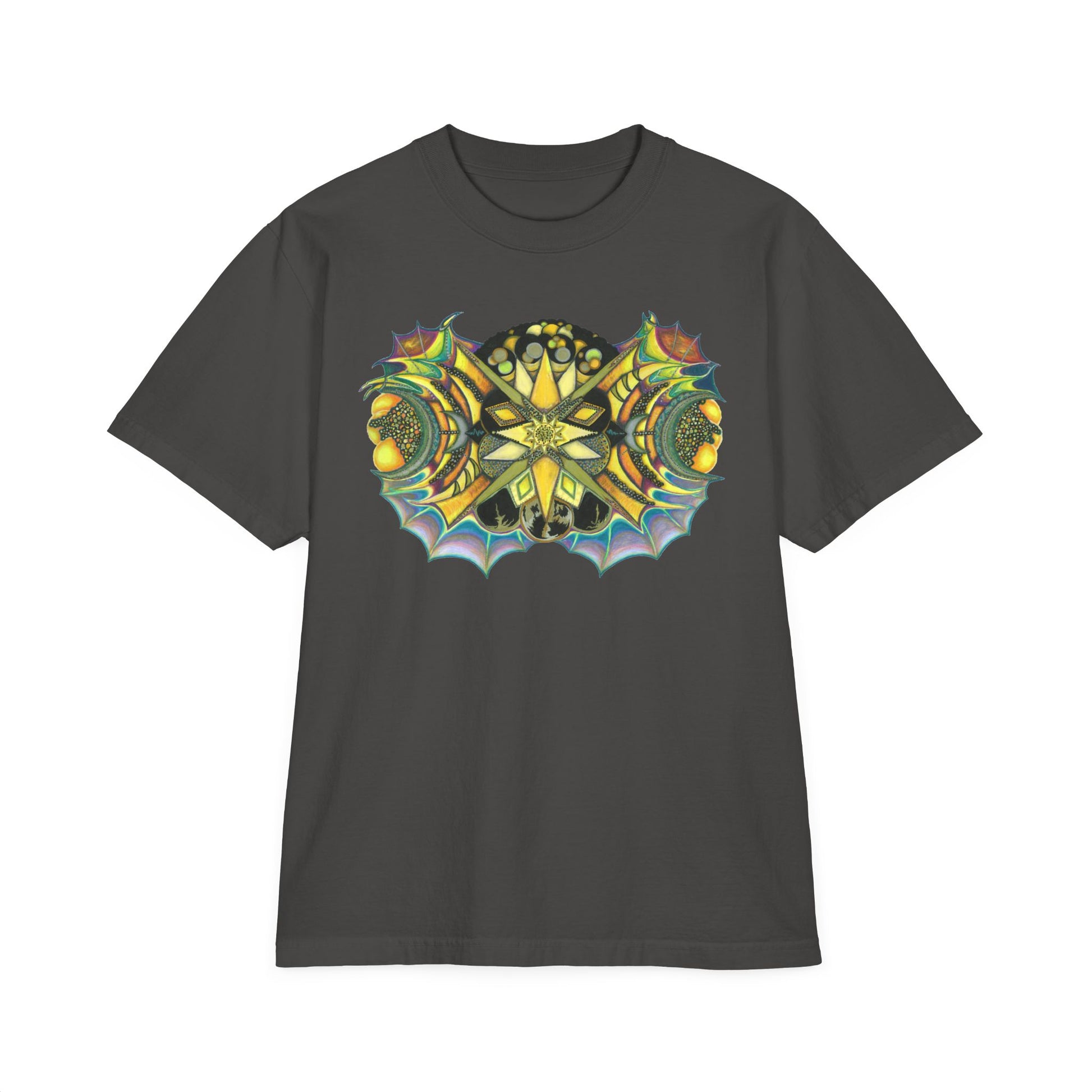 This vibrant, edgy unisex T-Shirt is perfect for those who want to let their strength shine. The unique creature design is a reflection of the artist's contemplation of what it feels like to take the jagged edges of the human condition and evolve them into something glorious, yet still not lacking in the strength we have developed over our experience. Made with 100% cotton fabric, this medium-weight shirt is ideal for printing and offers a comfortable fit with a drop-shoulder silhouette. Whether you're attending a music festival, hanging out with friends, or just expressing your individuality, this T-Shirt is a great addition to your wardrobe.